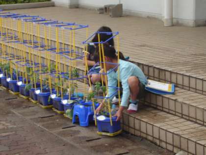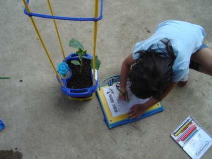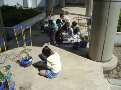今日は2年生が、先日植えた植物の観察をしていました。