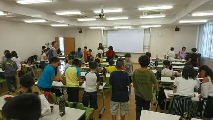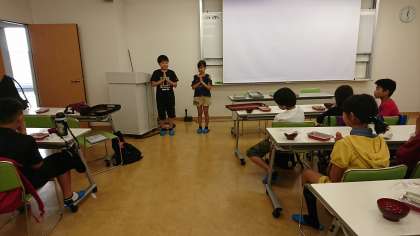 12時28分、「ごちそうさま」をしました。片付けは、近くに座っている人と協力して。容器の種類ごとに集めていきます。