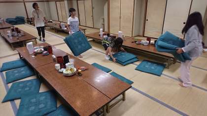 食堂を皆が出ると、座布団を進んで片付ける子がいました。