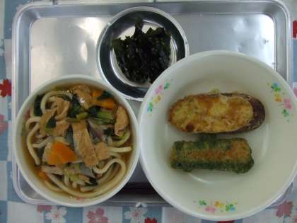 今日の「こぎつねうどん」は、油揚げを砂糖・しょうゆ・酒