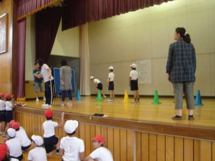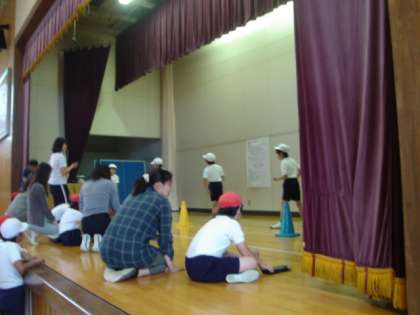 体育館ではシャトルランと、反復横跳びをやっていました。