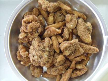 ※黒糖ナッツは、煎ったアーモンド・くるみを黒砂糖のタレとからめ