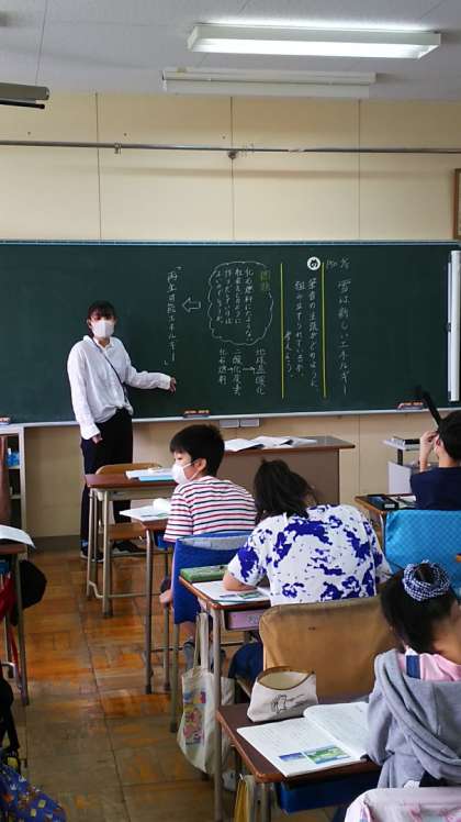 [6年生国語]今日から全学年、朝から全員揃っての授業開始です。6年生は説明文「雪は新しいエネルギー」の学習。筆者の主張がどのように組み立てられているのか、意見を出し合い学んでいます。