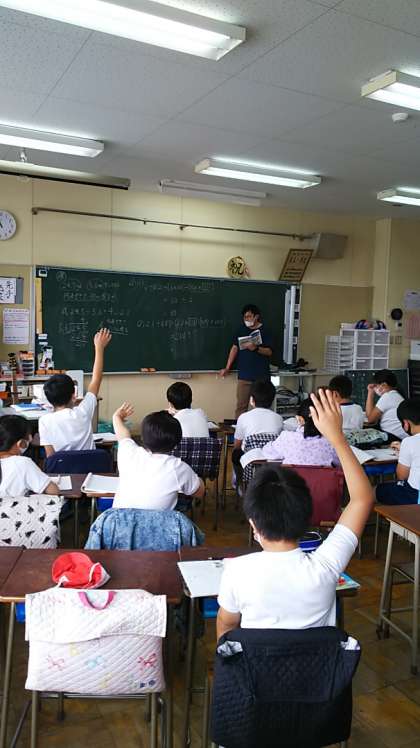 [5年生算数]「24.5mのロープを5.6mずつ切ります。何本できて何mあまりますか?」わる数を整数にするために10倍したら、わられる数も10倍することになります。大事なのは、あまりの小数点です。筆算した時の、あまりの小数点の位置は、わられる数のもとの小数点と同じところです。答えは「4本できて2.1mあまる」となります。