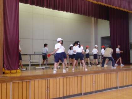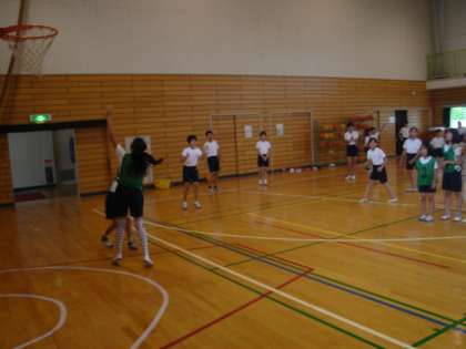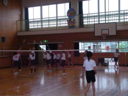 体育館ではバスケットボールクラブとバトミントンクラブ、