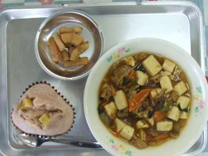 今日は、蒸しパンの生地に紫芋の粉を入れて、あじさいの