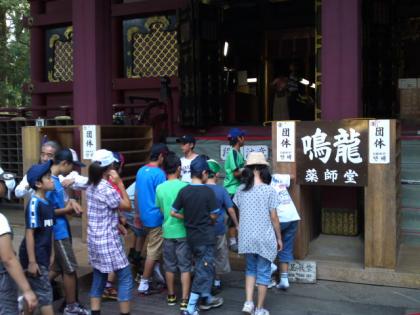 天井に描かれた龍の顔の下で拍子木を打つと…