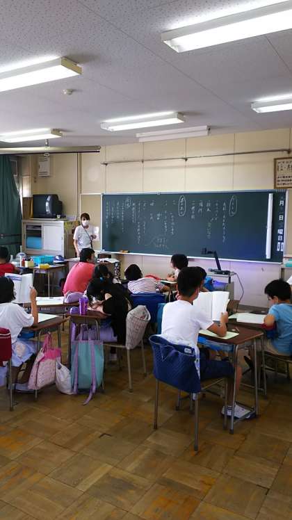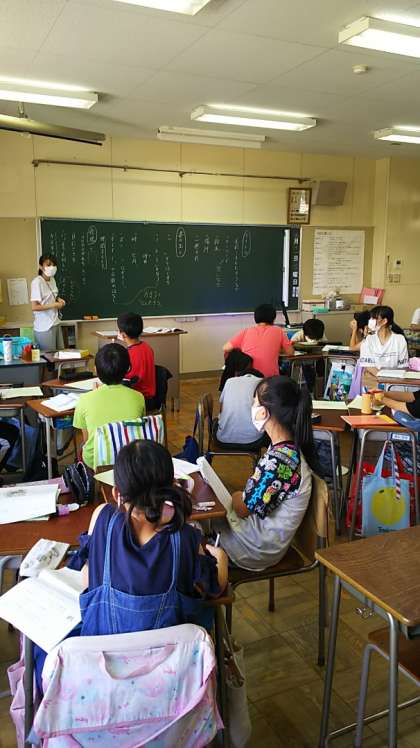 [6年生国語]こちらも「物語をつくろう」の学習です。「小説家デビュー 目指せ新人賞!」を合言葉に編集会議中です。今日は「構成メモ」を見ながら、どのように表現の工夫をしていこうかを考えます。いままでに学習した物語文を振り返りながら追究中です。