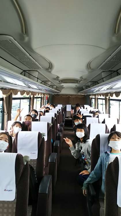 [5年生]PAに寄っている時間を使って2号車におじゃましました。2号車のみんなも元気です。さあいよいよ清水の町が見えてきました。