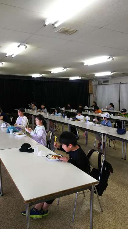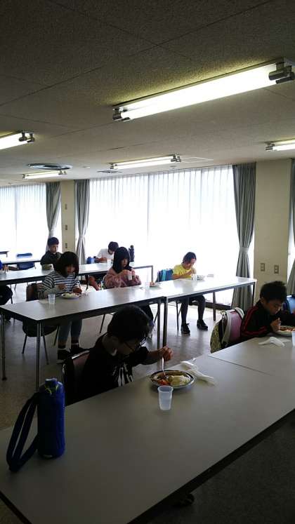 [5年生]今のところ、具合の悪い子はなく、みんな元気です。低学年がいないぶん、給食のカレーより少しだけ辛めのおいしいカレーでした。みんな同じ向きを向いての食事でした。