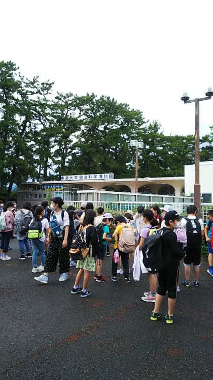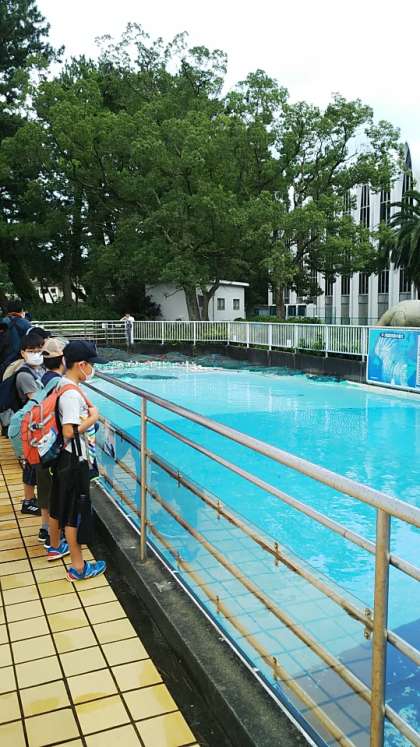 [5年生]更衣室で着替えてから、次は東海大学海洋科学博物館へ行きました。一般の方もいましたが、ほとんど貸し切りのようでした。大きな水槽、きれいな魚、津波の実験装置もありました。