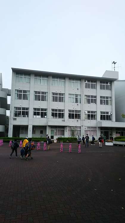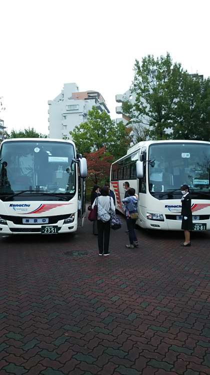 [6年生]6:45 さあ日光移動教室本番の日を迎えました。天気はまずまず。先生たちがバスに荷物の積み込みを始めています。早めに来た子たちが集まり始めました。
