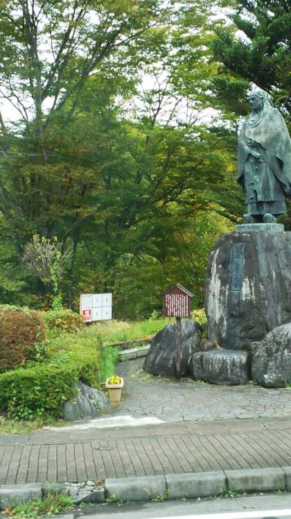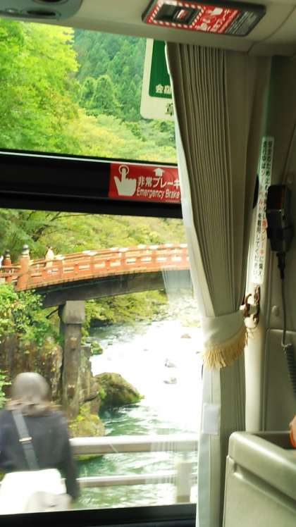 [6年生]12:35 羽生ICから東北道に入り、日光宇都宮道路を経由して日光市内に入りました。日光のシンボル天海大僧正の像がお出迎えです。日本三大奇橋「神橋」も車窓から見えました(写真がいまいち・・・)。