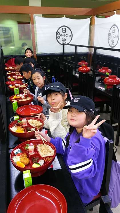 [6年生]12:50 いただきます!さあ大きなお椀のお昼ご飯、みんな食べきれるかな?・・・ちなみに、もちろん校長は完食しました。