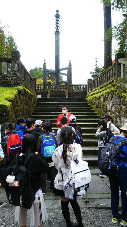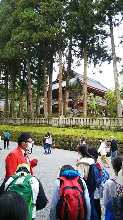 [6年生]13:40 まずは東照宮のお隣、輪王寺の説明を受けます。隣り合った東照宮、輪王寺、二荒山神社を合わせて日光二社一寺といいます。改修工事が終わってとてもきれいです。