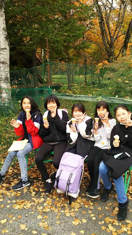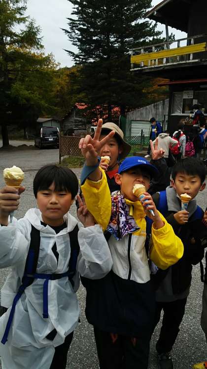 [6年生]15:05 みんな光徳牧場のアイスクリームをいただきました。歩いたあとの甘いものは格別ですね。