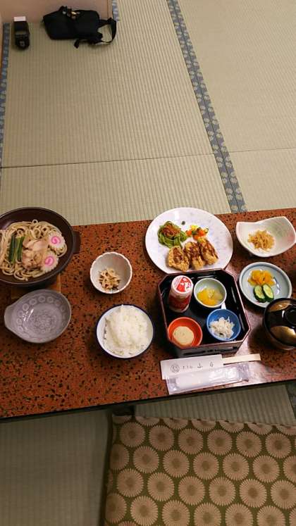 [6年生]17:40 今日の夕食メニューはこんな感じです。食事の後、ひと休みしてから、最後の夜を飾る学年レクが始まりました。