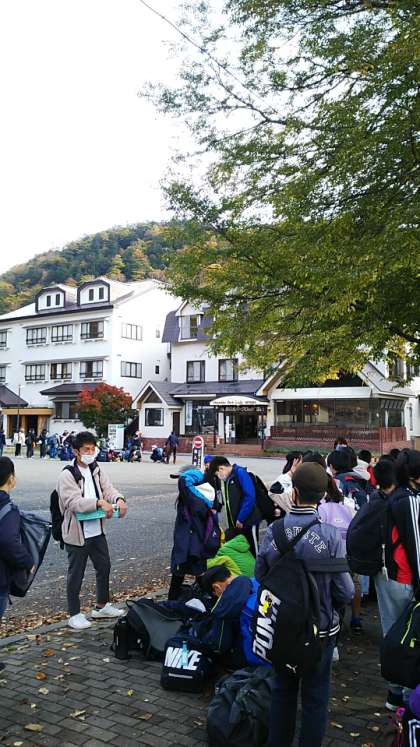 [6年生]8:00 閉校式です。宿舎のみなさんにしっかりお礼を言って湯元温泉を後にします。とてもいい天気です。
