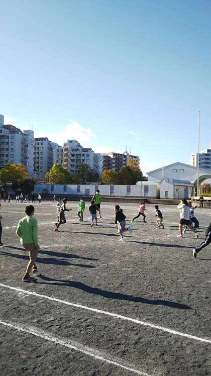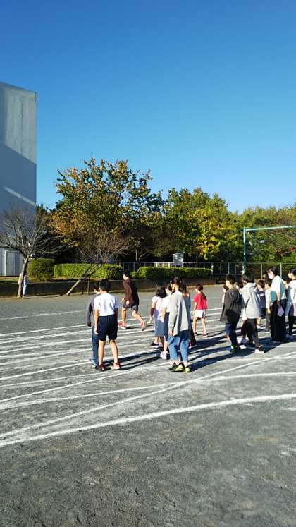 今朝はたてわり遊び集会です。8つの班の班長さんたちがみんなで遊べる遊びを考えて準備していました。5班は「だるまさんがころんだ」7班は「しっぽとり」です。