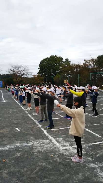間隔を取りながらの児童席。声を出さないけど心をひとつにする応援方法。新しい形の運動会です。
