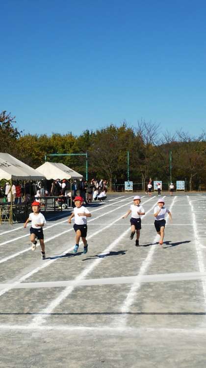 徒競走のトリは2年生です。50mを全力で走りきります。