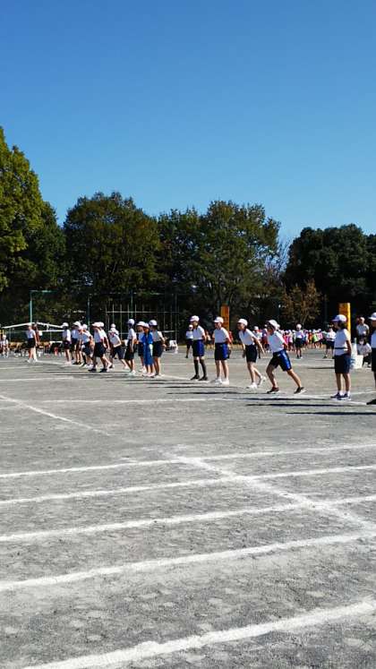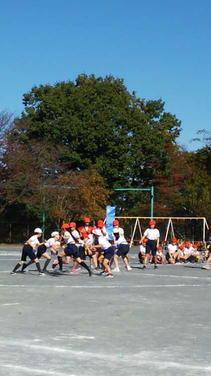 高学年は「全集中!タグ取り合戦」です。赤白それぞれ作戦があるようです。まずは女子から。