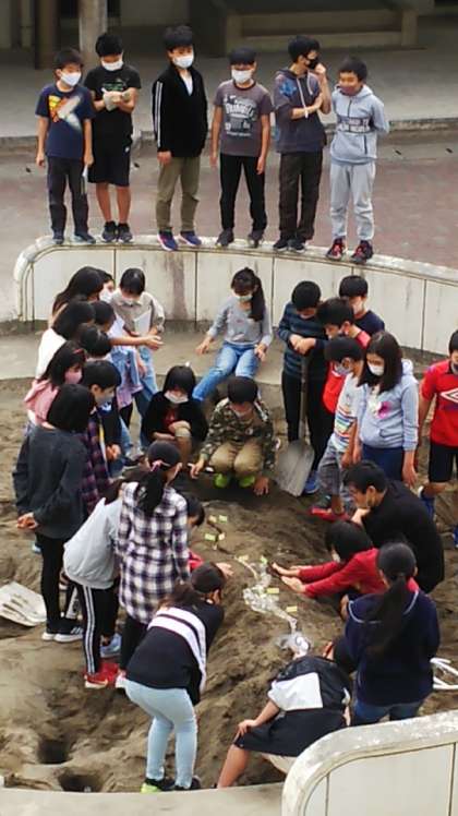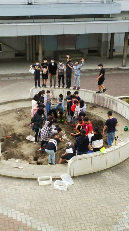[5年生理科]最後にはホースまで登場です。川の曲がっているところはどのような特徴があるのか、実験を見ながら実感することができました。