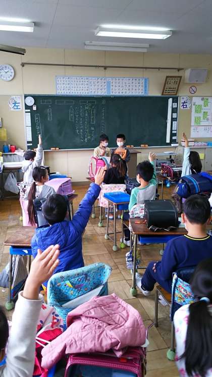 [2年生帰りの会]今日一日で見つけた「友達の優しいところ」を発言し合ったり、手作りの賞状を渡したりとほのぼのとした帰りの会でした。