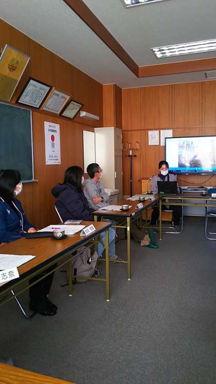 今回は学校林の活動について、子供たちの楽しそうな様子を画面で紹介しながら報告しました。本校の特色ある教育活動のひとつです。