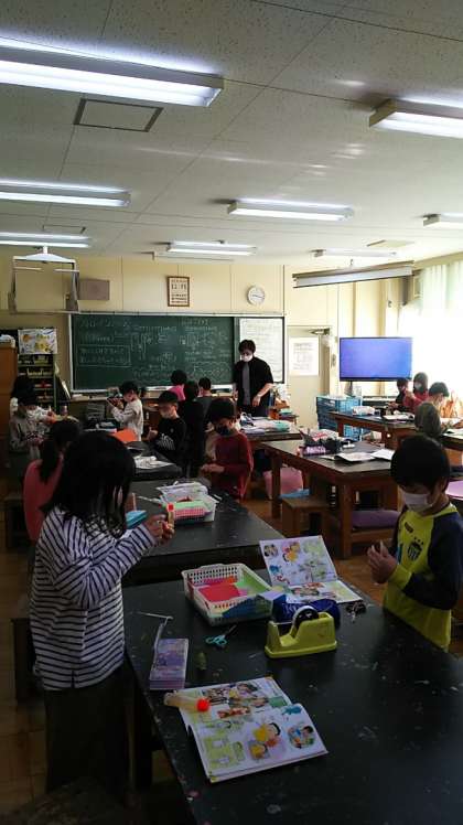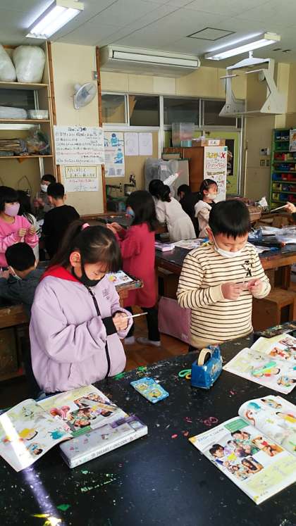 [2年生図工]みんな本当に楽しそうに取り組んでいます。校長も子供のころ、図工の時間が大好きでした。あまり上手ではありませんでしたが・・・。