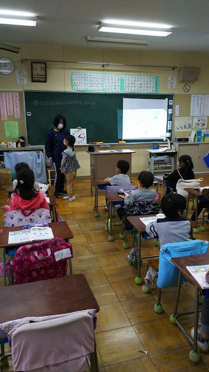 [1年生算数]時計の文字盤や針を見て気付いたことを発表しています。時計は人類の発明した偉大な道具ですね。