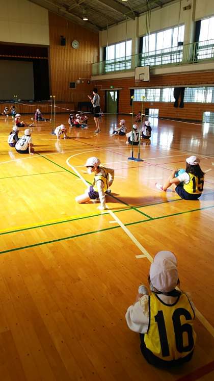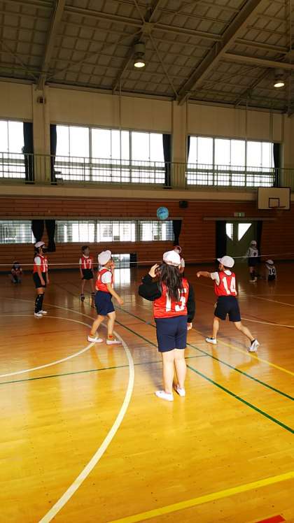 [3年生体育]ボールをつないでいくには、見方をいつもフォローしていくことが大事です。声掛け合ってプレーするといいですね。