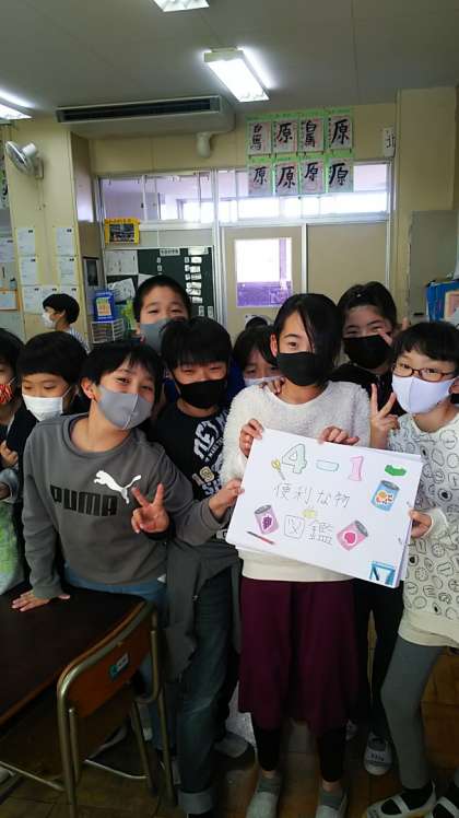 [4年生国語]子供たちに呼び止められました。「校長先生、これ私たちがみんなで作った図鑑です。見てください。」身の回りの便利なものを考える国語の学習「便利ということ」のまとめとして作ったとのことです。とても素敵な共同作品です。