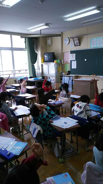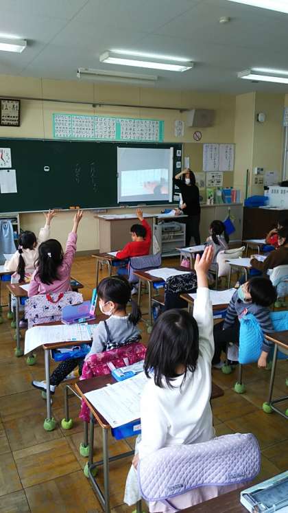 [1年生国語]毎日見ているのでいつもは気付きませんけど、先日6月頃のホームページの写真を見ていて「この頃の1年生まだ小さいなあ」と思いました。みんな大きくなりましたね。もうすぐ2年生ですものね。
