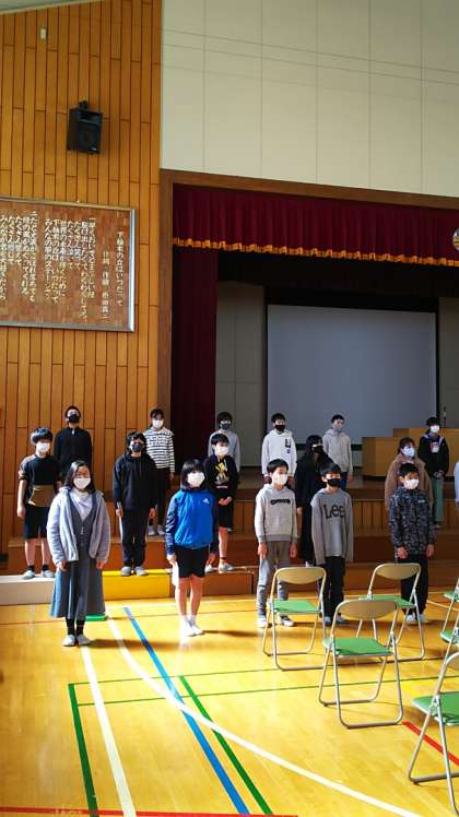 [6年生卒業式練習]門出の言葉の中には今年度初めの休業期間のことにふれる箇所もありました。たいへんな中で過ごしてきた最上級生だったんだと、あらためて感じました。