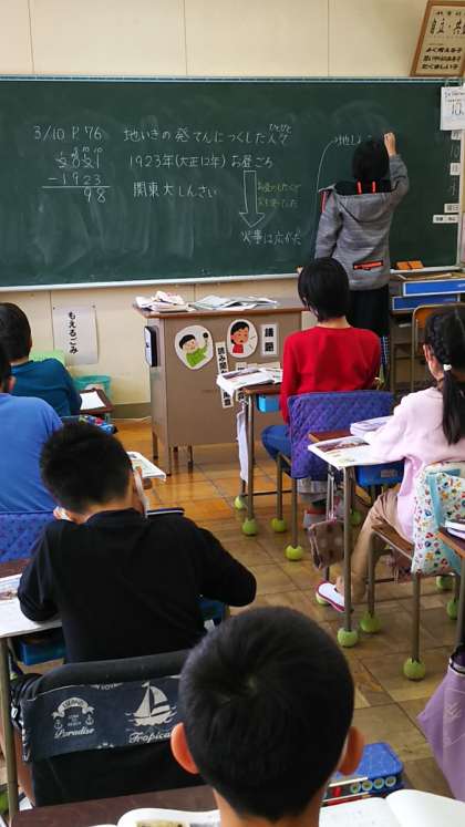 [4年生社会]「関東大震災」という言葉から子供たちはやっぱり「東日本大震災」を思い起こします。「先生、明日でちょうど10年だよ」と言います。そうだね、みんなが生まれた頃だったね。