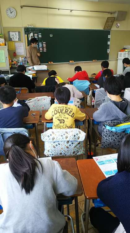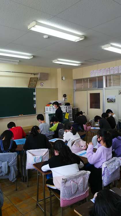 [5年生理科]「電流と電磁石」のテストをしています。シーンとした教室です。真剣な子供たちです。