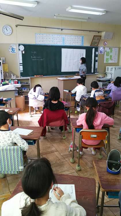 [2年生国語]新しい作文指導をしています。今回は自分のことを自由に書いてみようということです。