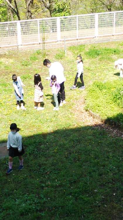[2年生生活]早速授業も始まっています。「春をさがそう」です。いい天気の下で楽しく活動できました。