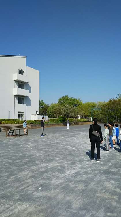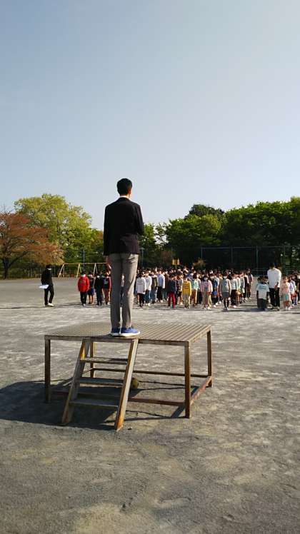 1週間の始まりは全校朝会からです。今日は年度初めですから、整列時に話を聞く姿勢や礼の仕方、行進の仕方について確認しました。