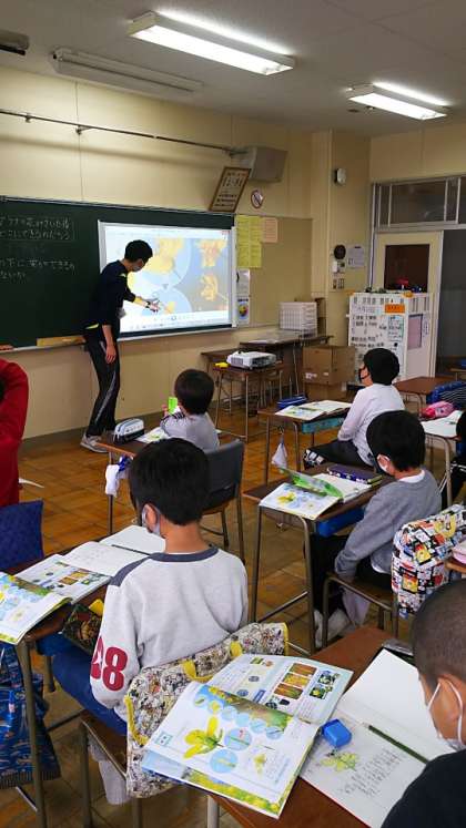 [5年生理科]みんなの予想は「実は花の下の部分にできるのではないか」でした。画像資料を使いながら検証していきます。
