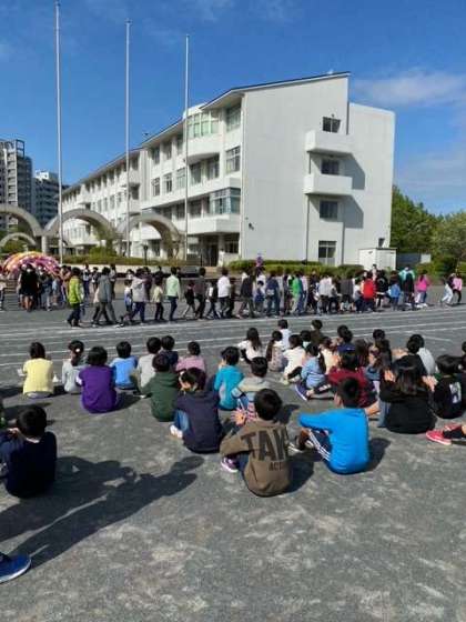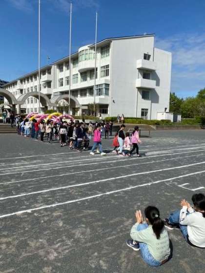 1年生と6年生が一緒に入場してきました。6年間の成長の差を感じる一瞬ですね。