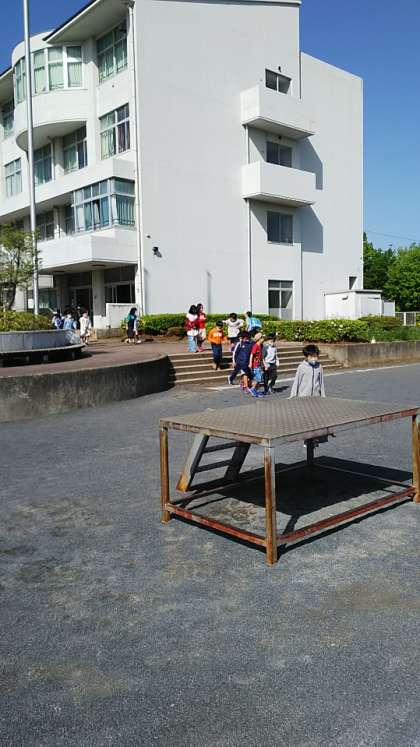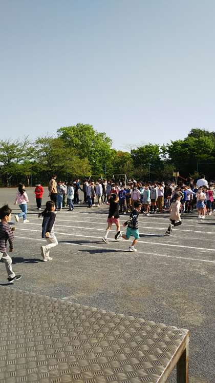 週の始めの全校朝会です。子供たちが次々に校庭へ出てきます。先生に言われなくてもしっかり整列できる子供たちです。