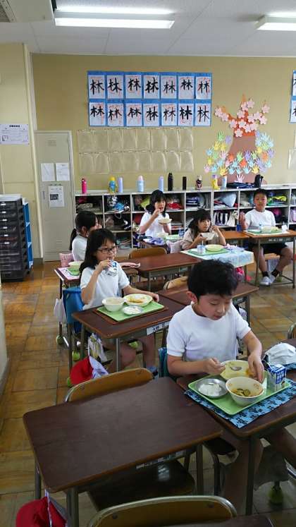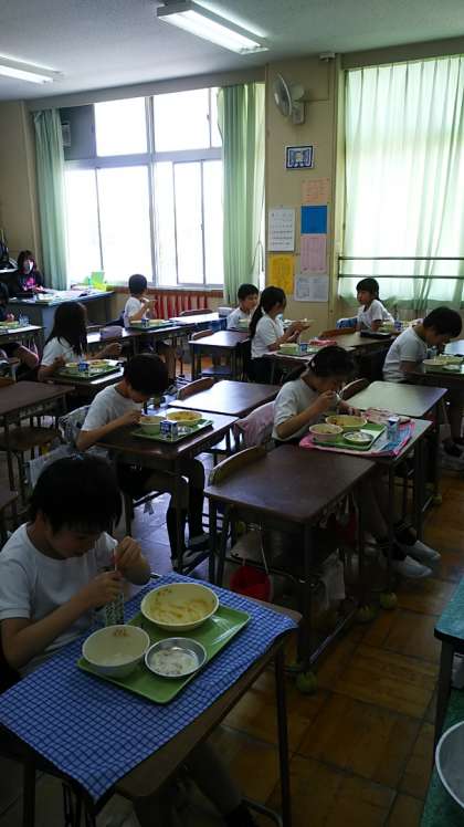 [4年生給食]みんな美味しそうに、でも静かに黙って食べています。いつになったら前のように班になって食べることができるようになるのかなと思ってしまいます。