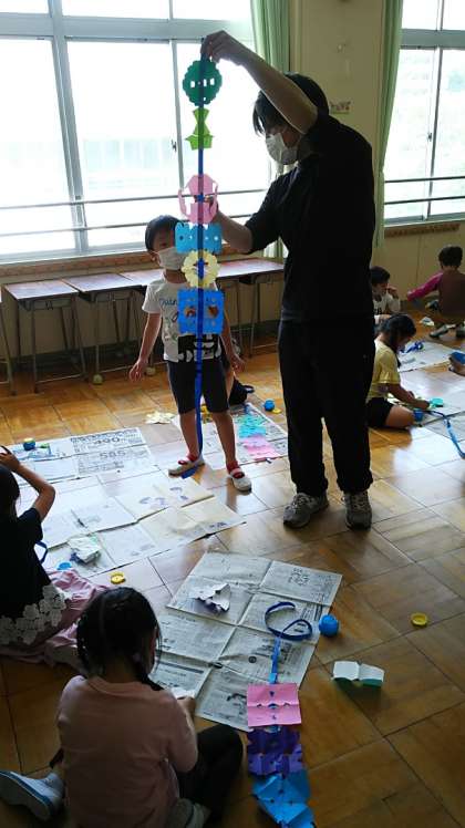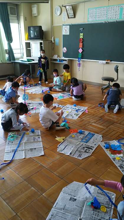[1年生図工]「ちょきちょきかざり」の学習です。はさみの使い方に慣れるようにしていきます。