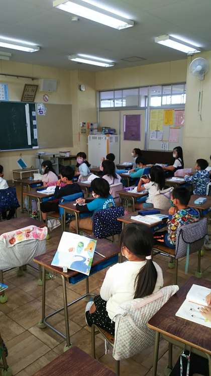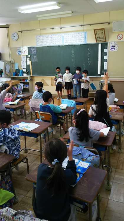 [2年生国語]各班の発表が終わるたびに、聞いていた人たちが良かったところを発表します。拍手が響きます。