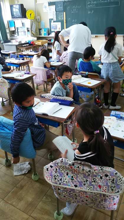 [2年生算数]例によって近くの人と考えたことを伝え合う時間もあります。どうすれば答が出せるかな。