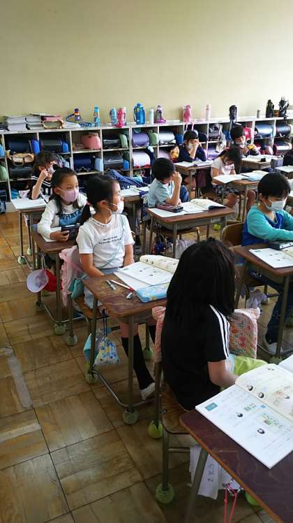 [2年生算数]クラス全体で考えを共有していきます。ただ「こうやります」と先生が教えるのではなく、みんなでやり方を見つけていくのですね。