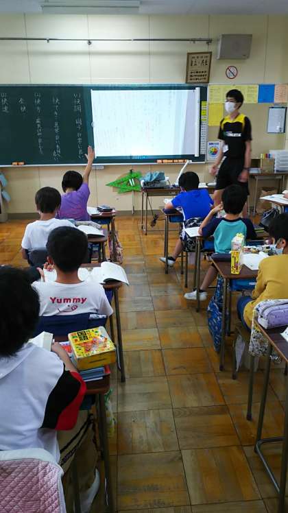 [5年生国語]「快」を使った言葉は、快調、快晴、快方、などなど。例文は「友達の病気は快方に向かった。」となります。みんな辞典を手に意欲的に調べています。