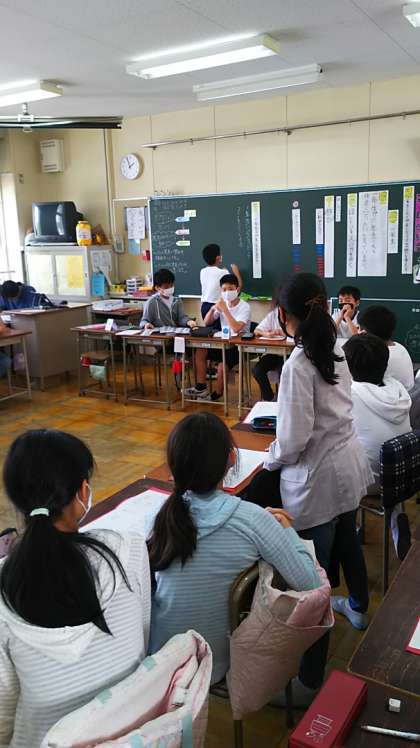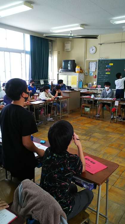 [6年生学活]柱1は、1年生との遊びを決めること。柱2は、遊びを通して1年生と仲良くなるための工夫です。